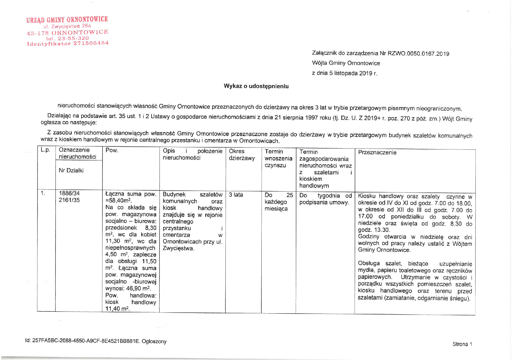 Wykaz o udostępnieniu nieruchomości stanowiących własność Gminy Ornontowice przeznaczonych do najmu na okres 3 lat
